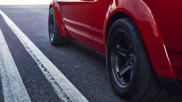 We’re well past April Fools Day, so we’ll drop the gag. No, these skinny tires aren’t compact spare tires. But you knew that. You’re a TopSpeed reader, making you smarter than the average bear. You know well and good these tires are for cutting weight. Dodge hasn’t announced the exact weight savings, but the pizza cutters certainly weigh much less than the 315/40R18 DOT-approved slicks.